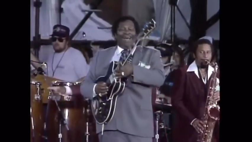 這場音樂會的 BB 國王, 吉他弦斷. 著名音樂家會得到新的和絃,只會改變, 繼續這首歌.
