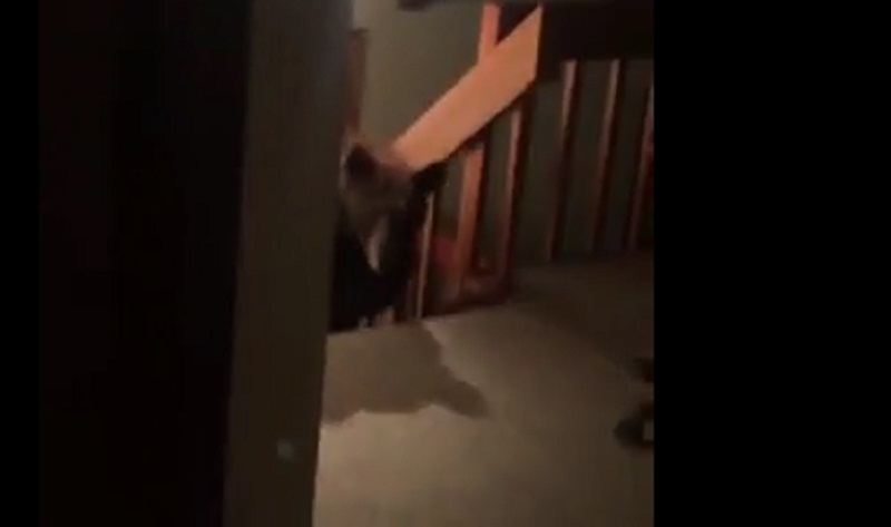 在夜晚, 一個人意識到他已經投產的一隻熊的房子. 前面的門未上鎖,且動物有機會去拜訪. 人開始記錄現場,從他的手機, 像熊一樣爬樓梯和辦法. 在那一刻停止視頻, 但值得慶倖的是,沒有人打破任何東西和熊走出房子,經過一段時間.