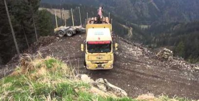 空間是足夠的如果你有技能. 現場卡車拖車上交的奧地利的山路.