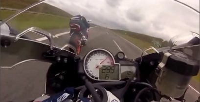兩個騎摩托車的人將與他們的機器開始危險沙朗牛肉 (寶馬 S1000RR 和本田 CBR1000RR), 在高速公路上甚至達到 300 公里/小時.