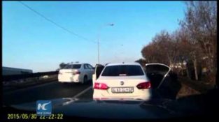 2015年5月30日下午4點左右, 一個中國人被搶在約翰尼斯堡市中心附近. 他的車上的攝像頭捕獲嚇壞了的現場.