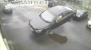 一個人奇跡生還在可怕的事故中把車停在多倫多,加拿大. 一種監控攝像頭拍攝的, 你可以看到汽車是如何飛行和碰撞的 [...]