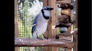 正如他在佛羅里達州尼埃的野生鳥類康復中心一起長大的貓, 一個可愛的藍鴉叫翻牌模仿室友的喵.