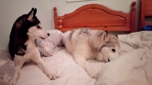 該西娜哈士奇和拉娜的malamout, 他們在床上一個很有趣的分歧.