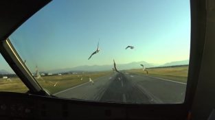 一架空客A320飛機敲了好幾海鷗在黑山波德戈里察在降落機場. 鳥兒在走廊裡隨便坐,當他們看到了巨大的飛機向他們執導. 他們試圖飛, [...]