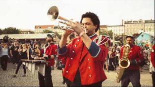 柏林, 就是Görlitzer公園: Techno Marching Band MEUTE 現場表演新版本的 Disclosure 和 Eliza Doolittle 的歌曲 You & Me,為夏季做好準備, 最初由水槽混音.