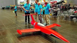 世界上第一架由渦輪驅動的「巨型」無線電遙控飛機準備在室內飛行