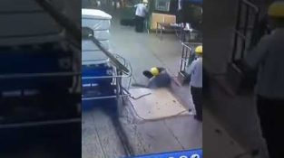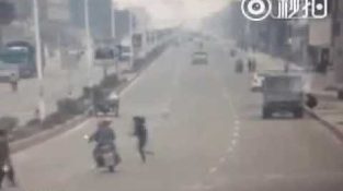 事故在未知區域, 其中一個平凡的女人試圖穿過街道和路過的摩托車相撞.