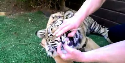 動物學家賈米森 Michael 掏出損壞的牙齒從他在南非的寵物老虎.