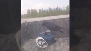每天工人,他發現自己的包打開,他的食物從內心缺少什麼. 於是,他把攝像機在他的汽車,發現小偷是一個聰明的烏鴉.