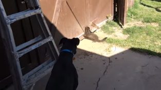約瑟夫·卡特使用黃鼠狼和訓練他的狗捉幾隻老鼠在一所房子的院子裡.