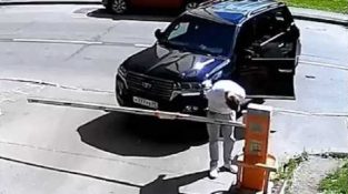 俄羅斯一名男子摧毀酒吧把車, 但在那一刻將通過旁邊的一個巡邏.