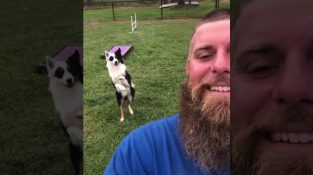 躺在床上, 2約克夏狗會看到他們的老闆為#WhatTheFluffChallenge毯子後面消失. 然後它發生了一些很搞笑.