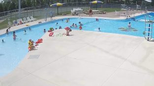 在一個公共游泳池在美國, 救生員迅速作出反應,拉出來的水淹死的危險小的孩子.