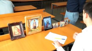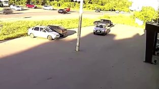 機動車輛駕駛員離開停車Arzama在俄羅斯, 當突然被蒙蔽的陽光. 於是,他在他的面前看到他的車被釘在柱子上. 與幾個面對 [...]