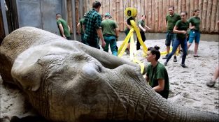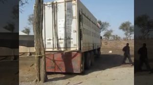 快速從卡車上卸下集裝箱的技術, 在蘇丹南部的一個難民營裡.