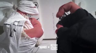 白忍者會見紅色武術大師, 在這場交戰中. youtuber先生. 馬諾斯用雙手, 模仿武術武術編排.