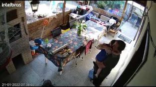 兩個年輕人與雪球決鬥. 背靠背刪除了十個步驟, 他們同時轉身扔雪球,試圖擊中對手. 兩個球在空中碰撞 [...]