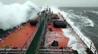 在波羅的海發生大風暴期間, 巨大的海浪襲擊並摧毀了俄羅斯油輪上的船長橋. 幸運的是, 這艘船能夠安全地繼續航行.