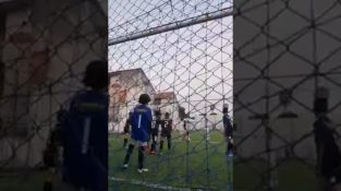一名年輕的守門員在做出重大撲救時興奮不已, 並衝向觀眾慶祝…