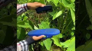 一個男人將一部可以錄製視頻的手機放在人字拖上, 並把它留在一條小溪的表面. 結果很壯觀.