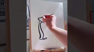 一位藝術家用一條連續的線畫了一頭大象, 不舉他的刷子.