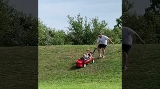 一位父親想讓他的三個年幼的孩子在小山上乘坐嬰兒車來娛樂他們. 他的母親喊道:「請不要殺死我們的孩子!”.
