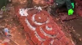 工業木材倖存者在幾秒鐘內吞噬了一個樹幹