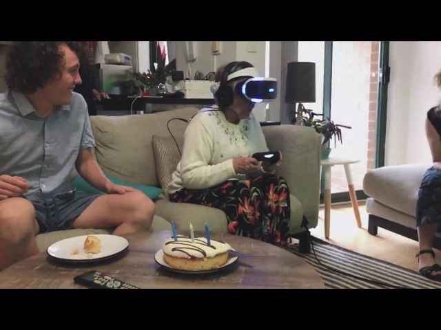一位老妇人第一次尝试虚拟现实头盔时感到惊慌……