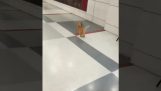 猫攻击和捉到一只蝙蝠