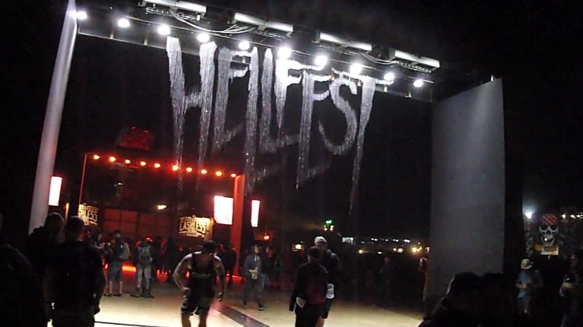 在金属节日Hellfest 2018克利松,法国, 它竖立一个令人印象深刻的喷泉与水产生的设计.