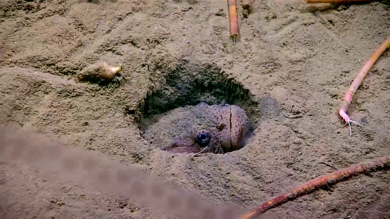 2018 年 6 月 30 日“Windows to the Deep 2018”任务潜水期间录制的视频, 我们看到的是底栖性鱼类 (大西洋海军官校学生, 鲶鱼) 潜伏在一个孔, 突然抓起,从点跑了梭鱼. 蜗牛是无辜的 (和不幸) 参加整个这一幕.