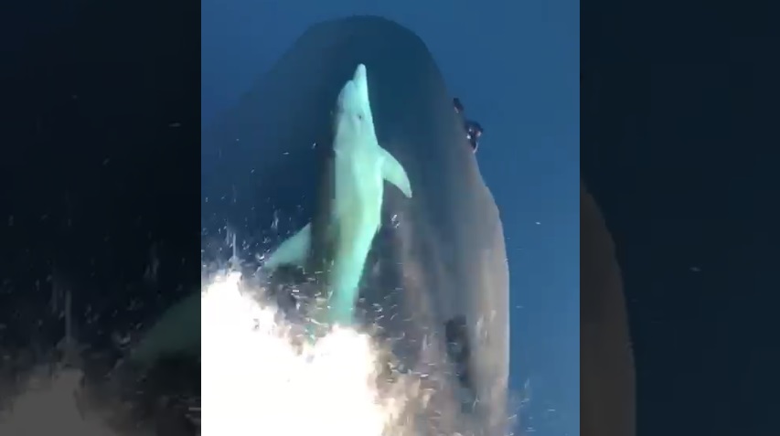托米斯拉夫·彼得里奇船来自克罗地亚的亚得里亚海清澈海域行驶的弓下拍摄海豚游泳. 当船向前移动, 使波的水的前. 将他的身体在这波, 喜欢上网的移动海豚不花他的能量.