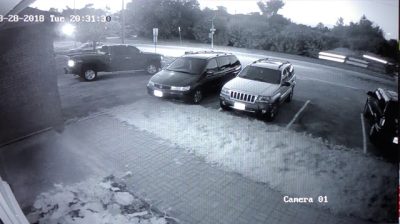 四门特斯拉越过陡峭的小大道铁路轨道的速度星期二晚上率高,失去控制并撞向停车场Assikinack公立学校的前升空.