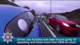 一个滑板撞上一辆汽车在高速行驶. 幸运的是, 骑手只用事故离开了。.