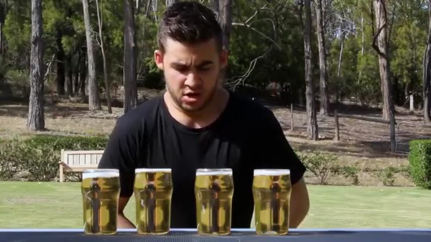 多姆·钱伯斯设法在 8 秒内喝下 4 杯啤酒. 第一个世界纪录.