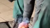 当它变外面真的很冷, 你能做的就是有一些乐趣. 在-25 ℃/13F, 肥皂泡泡...