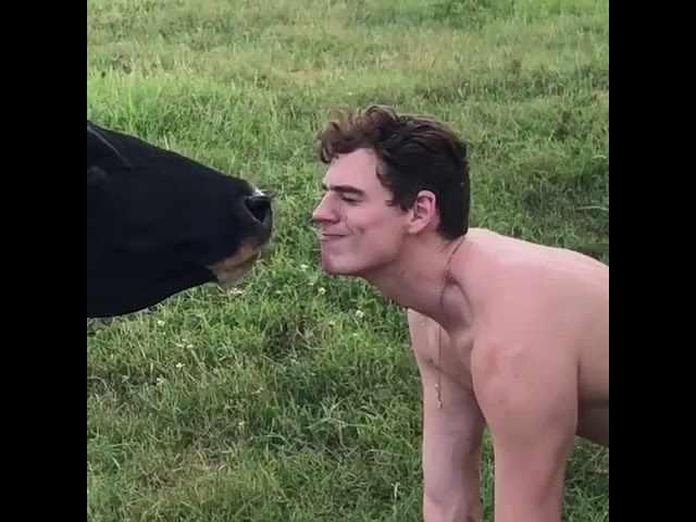 狗让一个人跳迈克尔·杰克逊的舞步.