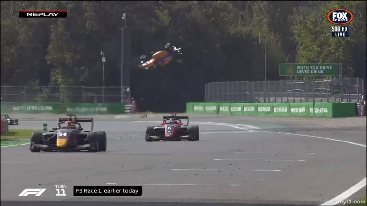 上周六2019年9月7日, 澳大利亚车手亚历克斯·佩罗尼的汽车做了一个精彩的飞行,由于在弯道上破路边. 在F3在蒙扎,意大利第一场比赛中的事件发生. 这位19岁的当时能够走出他的车被送往医院做检查之前,. 幸运的是, 它是好的.