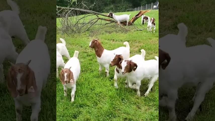 就像惊悚片中的场景, 畜栏里的山羊用两条腿走路.