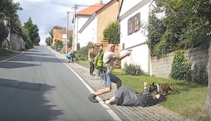 2020年7月17日,星期五,捷克共和国内比洛维, 马丁, 比尔森的一名警察, 一条狗突然袭击他64岁的母亲和他的小狗时,他正与家人同行. 然后,他用服务手枪射击并吓and了狗. 被噪音吓到了, 那只狗马上被移走了. 得益于这种快速反应, 他妈妈只受了轻伤.