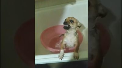 这只吉娃娃讨厌水, 当它的主人试图把它变成浴室时会生气.