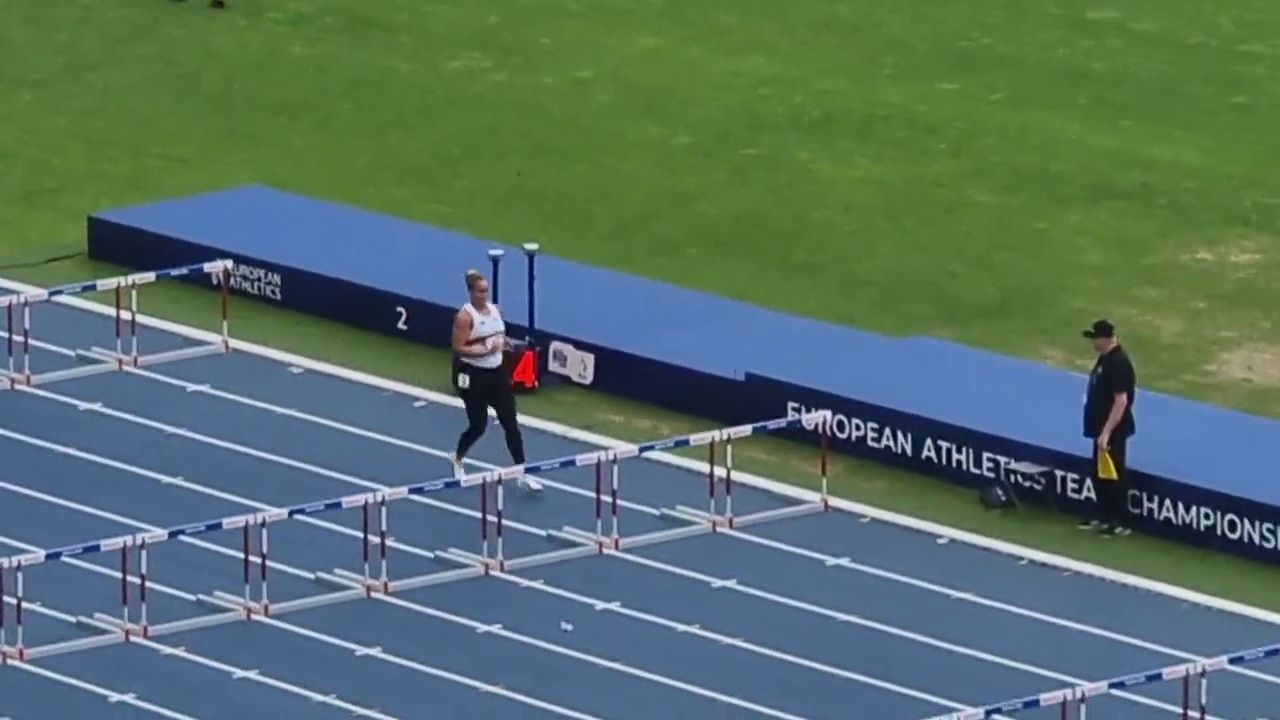 2023 年 6 月 24 日星期六,在波兰霍茹夫举行的欧洲田径锦标赛期间, 比利时铅球运动员 Jolien Boumkwo 参加 100m 栏比赛. 因为同事受伤, 该队将得到 0 分. 有她的参与, 铅球运动员拿下 1 分,帮助她的国家队晋级. 以 32 英寸 8 跑完 100m 栏, 比第一次慢了近20秒.