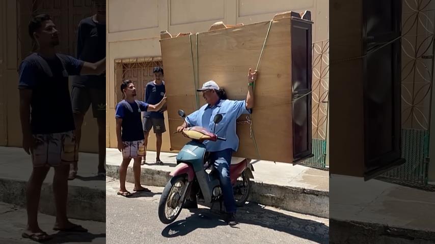 摩托车上一个大衣柜非正统搬到巴西. 这位勇敢的骑手能否成功;
