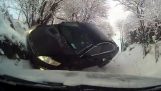 一个男人想用他的宝马X5加速并在漂流中进行示威. 重型汽车撞到路边,打破了他的后轮.