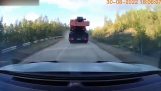 卡车的刹车停止工作, 随着这在下坡山路上移动.