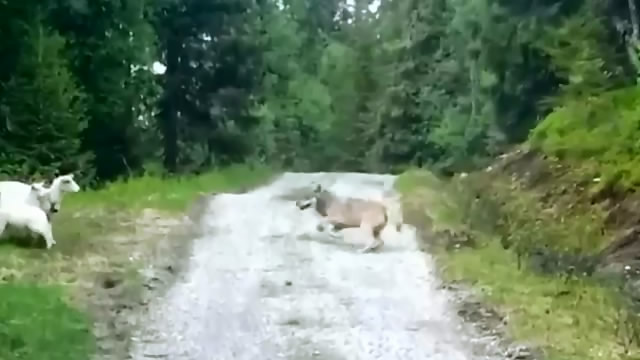 母羊试图保护她的幼崽一只狼从潜伏. 将毫不犹豫地攻击他几次,直到他被删除. 事件发生在挪威的 Rognes 村.