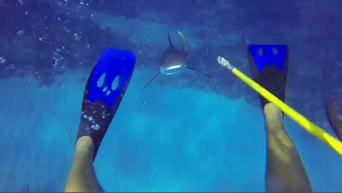 潜水员 Jason 迪米特里攻击被一条鲨鱼在海滩加勒比弗兰克大开曼岛的声音.