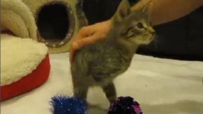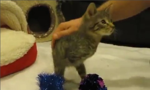 水星小猫 4 天大时在割草机事故中失去了双前腿. 但现在却是非常幸福的生活, 他并不感到任何疼痛, 和她走路也像小霸王龙!