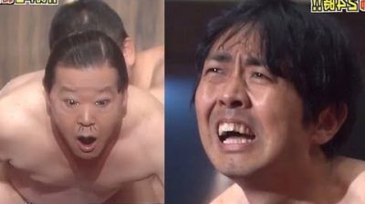 在日本2武士以一种壮观的方式在街上收集垃圾.